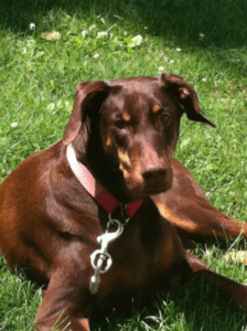 We have had Suni for a little over 6 months. She is everything we wanted in a dobie! We had been without a Dobie for several years and had missed the affection, company, and loyalty. Your knowledge and evaluation was very accurate. Suni is down to a trim 85 lbs and has become a part of the family.